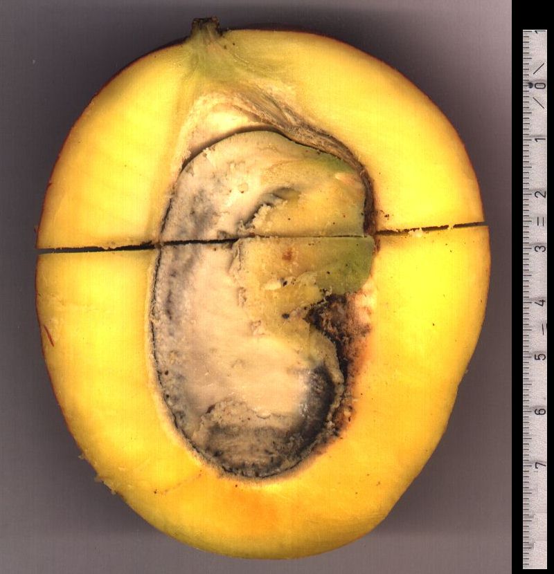 Hier ist eine Mango-Frucht, die an ihrer dicksten