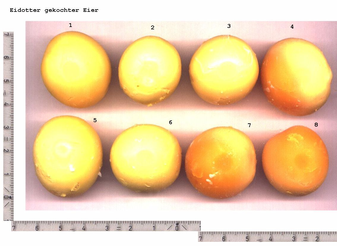am rohen Ei messen. Außerdem ist das Eidotter in eine