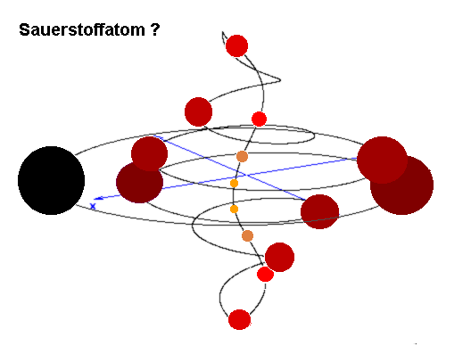 In Abb. 2.5 erkennt man die Bildung der Kernmasse im Zentrum der Rotationen als Vektorsumme H+G. Wegen der durchgängig beibehaltenen Drehrichtung 'Rechts' findet man mit Hilfe der Rechte-Hand-Regel sowohl außen abwärtsführend (Ergebnis: Proton) als auch innen aufwärtsführend (Ergebnis: Neutron) in der Mitte ein nach unten gerichtetes H-Feld, das mit G gleichgerichtet ist und sich somit verdoppelt. Hinweis: Auch andere Spiralenformen sind denkbar (Abb.6).