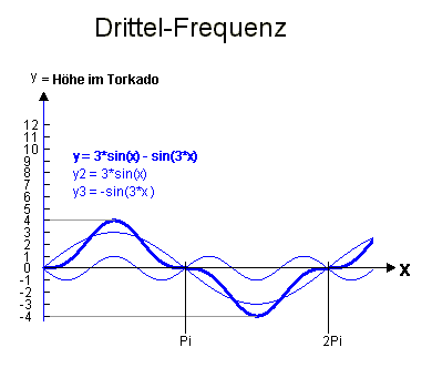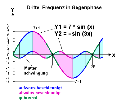 Halbwellen der G-Schwingung im Verlauf einer Schwungmassen-Schleife: Summenschwingung = A*sin(wt) - sin(3wt), mit 2 < A < 10, A ganz