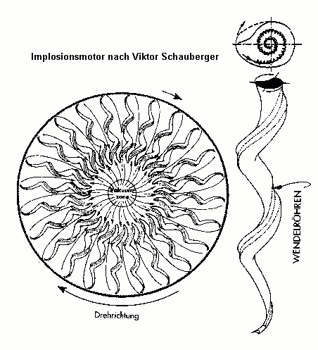 Für mich hat ein Wirbelrohr bereits eine Atomstruktur: Die heiße Strömung verläuft parallel zum Mutterfeld (hier lediglich der Einströmfluss) und man könnte die Effektivität mit Hilfe der Gravitation verbessern, indem man es senkrecht stellt mit dem heißen Auslass nach unten. Die aufwärtsführende Gegenströmung ist nur das große Fraktal von Mikrowirbeln (als Überlagerung vieler kleinen), in denen sich die Strömung sowieso bewegt (Torkado-Mittelschlauch=AtomKern), deswegen die unproblematische Umlenkung, diese findet nicht nur am Rohrende, sondern überall statt. Wenn ein natürlicher Flusslauf in Mäandern, also abwechselnden Rechts- und Linkskurven verläuft, dann wird in den Kurven das Wasser am steilen Außenufer von unten nach oben getragen und rotiert dort quer zum Flußlauf und in der flachen Innenkurve von oben nach unten, wobei es länger 'fallend beschleunigt'. Soweit wie im Wirbelrohr, aber durch die Mäander unsymmetrischer, so dass die Natur - neben dem Gefälle - die Gravitation als weiteren Antrieb nutzt. Dabei wird es in der Flussmitte kalt und es gibt einen rückwärts gerichteten Mittelstrom, der bis zur vorgehenden Kurve auf den andersherum gewendelten Hauptstrom trifft und mit ihm chaotisch verwirbelt. Durch diese Verwirbelung lagert sich Sand und Gestein ab und der Fluss wird sehr flach und breit und bildet immer genau zwischen zwei Kurven eine Furt. In der Mitte bleiben trotzdem die Wirbel-Zusammenstöße, aber sie sind aus Platzmangel zerkleinert wie Korn in einer Mühle (Schaubergers 'Energiekanone'). In Flussrichtung nach der Furt hat der Kurvenwirbel die Richtung geändert, was er dem Gegenstrom aus der noch kommenden Kurve zu verdanken hat. Ansonsten könnte er gar nicht "mit Anlauf" von unten nach oben in die steile Gegenkuve gehen. Nur Schauberger war so schlau, seinen Wirbelrohren gleich Mäander (ohne Richtungswechsel !) zu verpassen und sie senkrecht zu stellen oder durch Rotation der Zentrifugalkraft auszusetzen. Er hat die Natur begriffen.