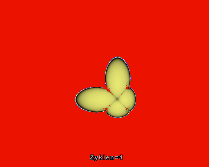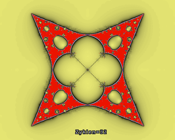 Mindestens eine Subtraktion muss in der Funktion vorhanden sein, um durch Kompensation von Teilgrößen in wiederkehrende Zyklen zu gelangen. Man beachte, dass Z und C genauso oft negative Komponenten haben können wie positive. Und wenn Z kleiner als Eins ist, verhält sich Z^2 wie sonst ein 1/(Z^2).