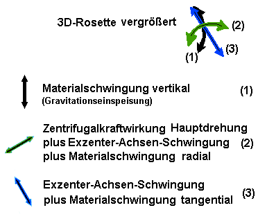 Materialschwingung nach unten (1) wird durch die Gravitation erzeugt,